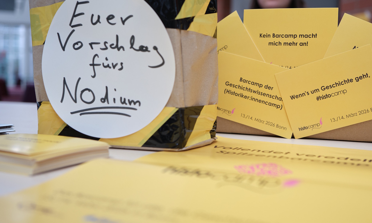 Als Begegnungsort für alle, die sich mit Geschichte befassen, kehrte unser histocamp am 13./14. März 2026 an seinen Ursprungsort von vor zehn Jahren zurück: nach Bonn. Vielfältige Teilnehmende aus Wissenschaft und Schule, Zivilgesellschaft und Institutionen, Medien und Wirtschaft führten auf dem Barcamp ihre Welten zusammen. Sie stellten innovative Projekte, Ideen und Themen vor und für die verfügbaren Session-Slots zur Abstimmung. Gastgeber war die Friedrich-Ebert-Stiftung in Bonn. Sie steuerte ihre Räume, die Verpflegung und ein gefragtes Rahmenprogramm bei.